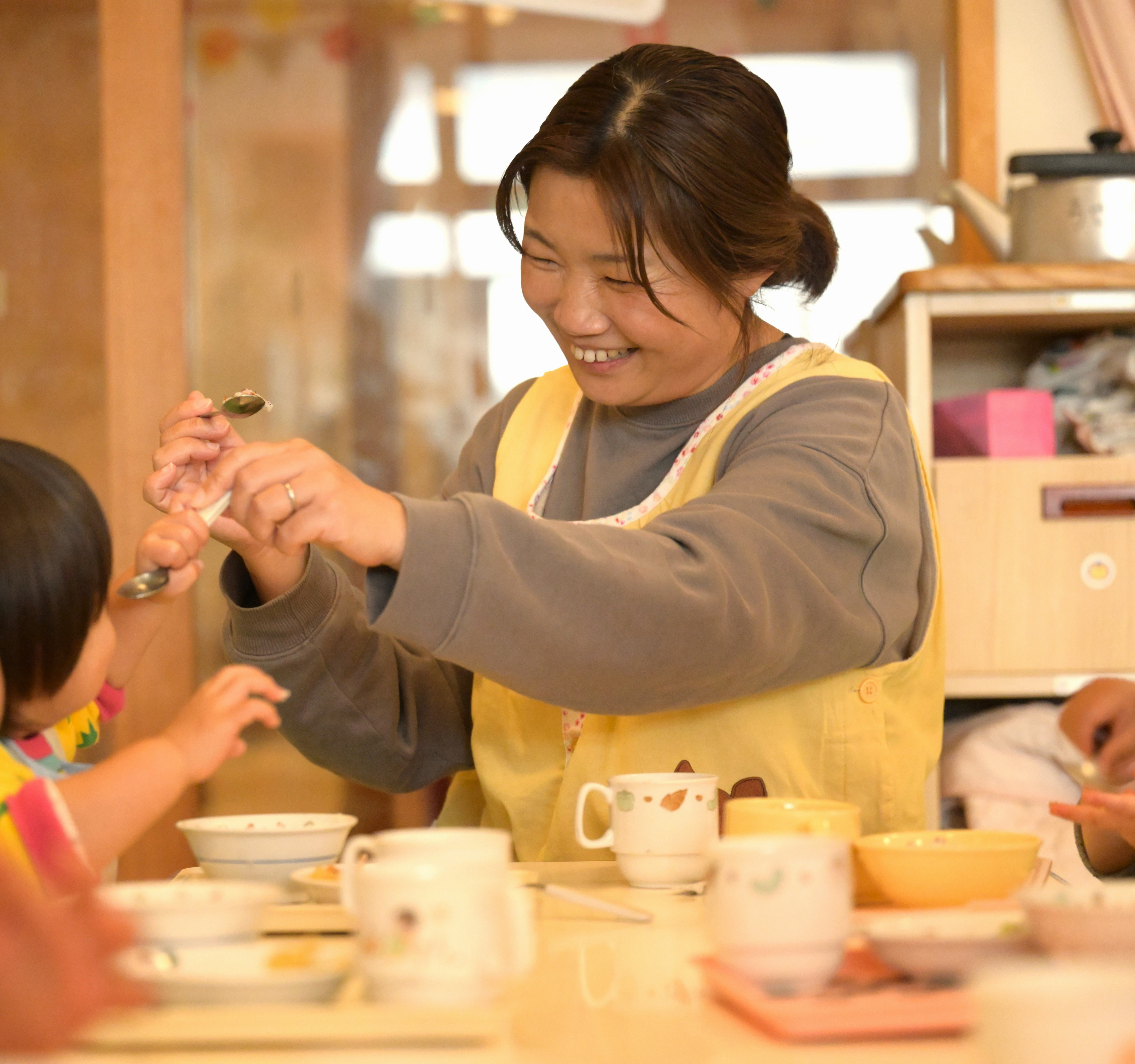 子どもたちが安心して安全に過ごせるよう、配置基準数よりも多く保育者が所属しています。これにより、各クラスの状況に応じた柔軟な人員配置が可能です。また職員の働きやすさにもつながっており、有給休暇がとりやすく、経験年数が違う保育者と関わることもあるので、学びながら仕事を進めることができます。